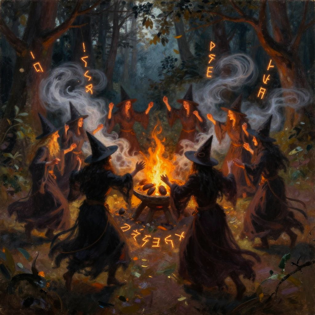 Mystical Witches Dancing Under Moonlight