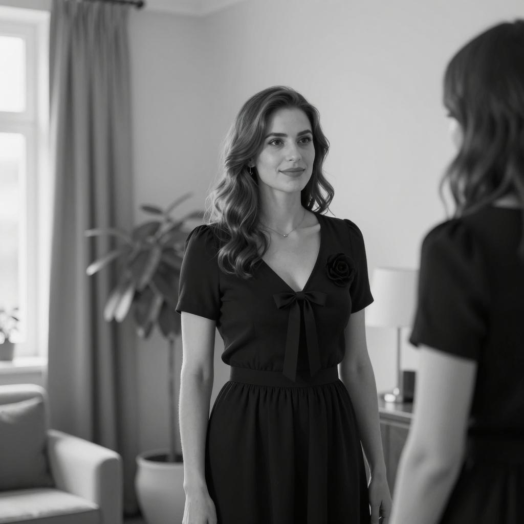 Calm Woman with Dog in Black and White