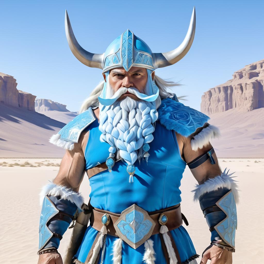 Muscular Elderly Viking with Icy Blue Skin in Desert
