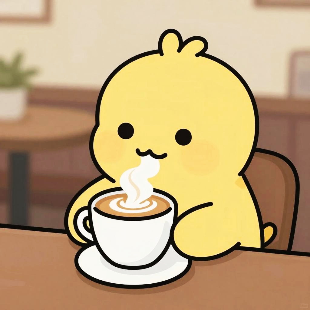 Doodle Coffee Bear - A cheerful chickadee sipping from a cappuccino cup for a warm and uplifting atmosphere.