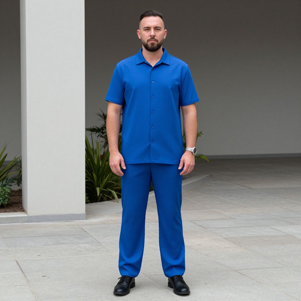Shirt Pant Set Costume, man in a blue shirt and pants standing on a sidewalk