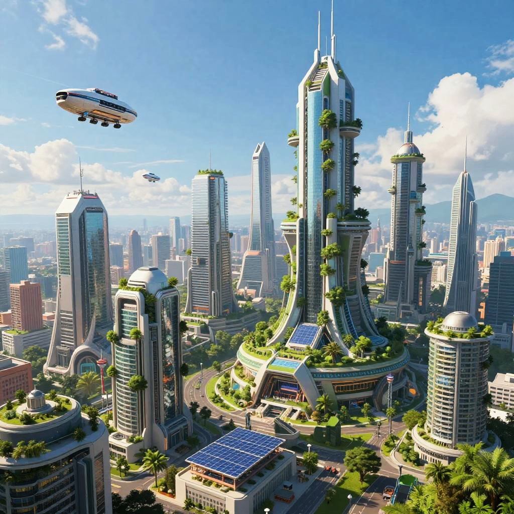 Futuristic Utopian Cityscape Illustration