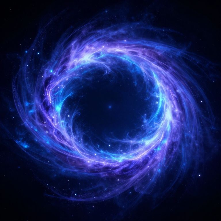 Digital artwork of a glowing, blue, swirling vortex in a dark, star-filled space, creating a cosmic, mesmerizing effect.