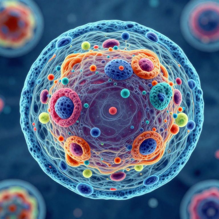 Super resolution AI improving a microscopic cellular image, revealing intricate details of cell structures with vibrant fluorescence colors, biotechnology inspired digital artwork, hyper-detailed and ultra-realistic, blending science with artistic beauty.