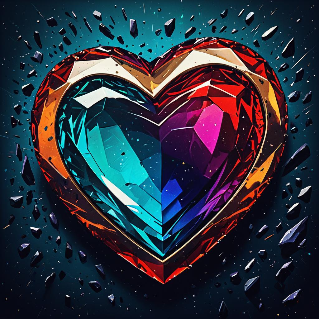Intense emotional illustration of heartbreak, vibrant jewel tones, glossy textures, high-quality, digital painting, deep and intense emotions