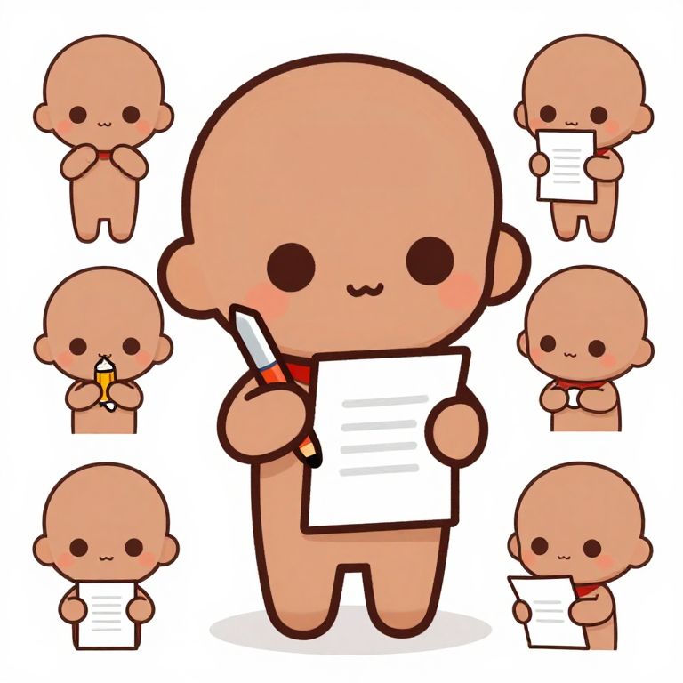 Palette Knife Light brown skin, chibi, kawaii, bald, beard,no glasses, standing with jordan,eating, drawing with a pencil paper, multiple poses and expressions, simply, vector,