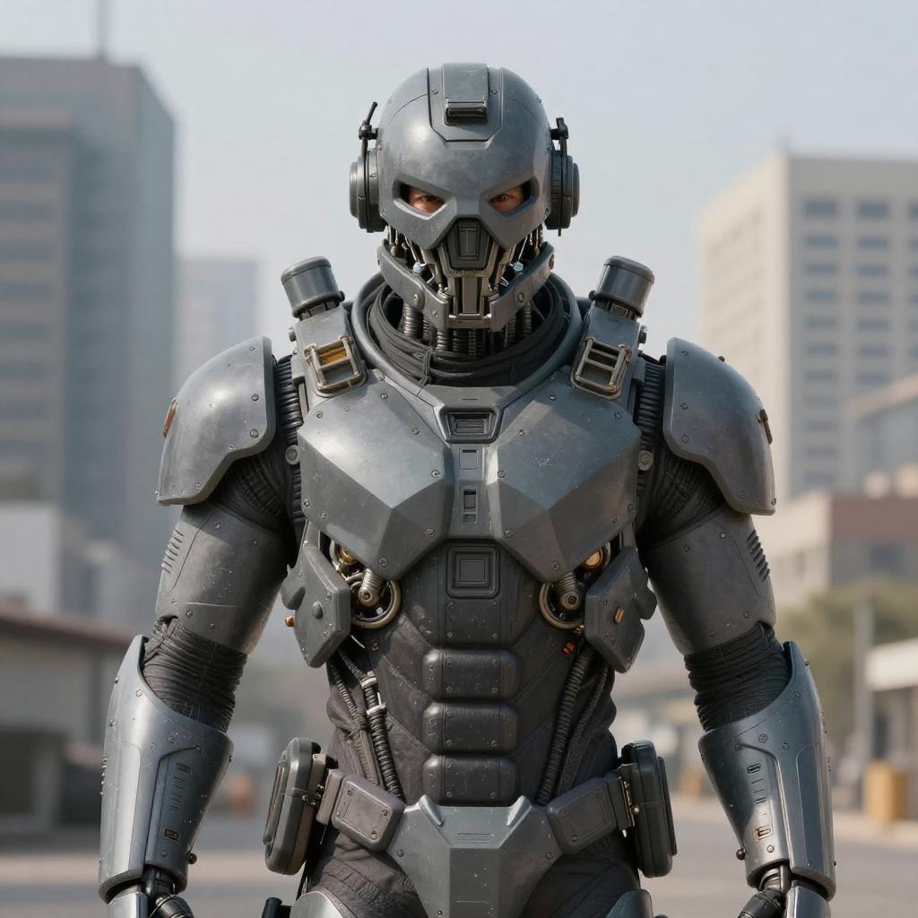 Cybernetic Soldier in Urban Daylight