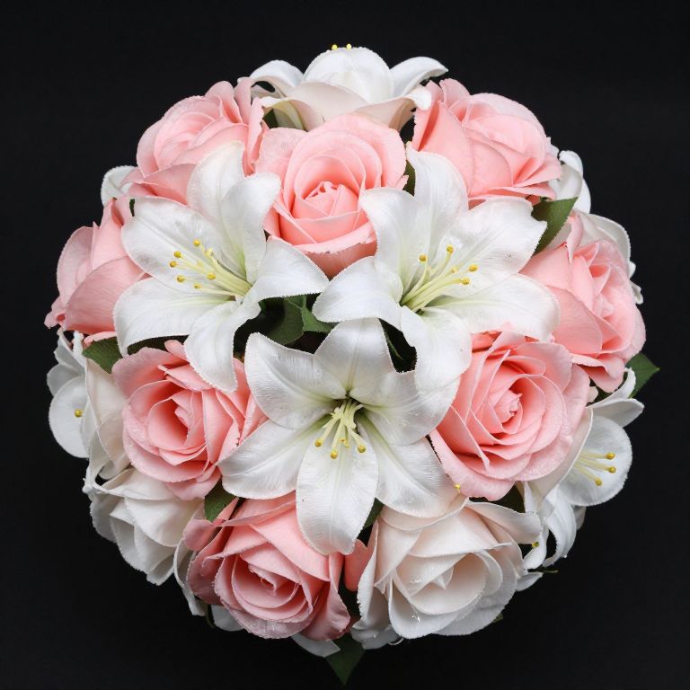 \"17 Piece Package Silk Flowers Wedding Bouquet Artificial Bridal Party Bouquets Decoration Centerpiece CORAL IVORY \"\"Lily of Angeles\"\" IVCO04\