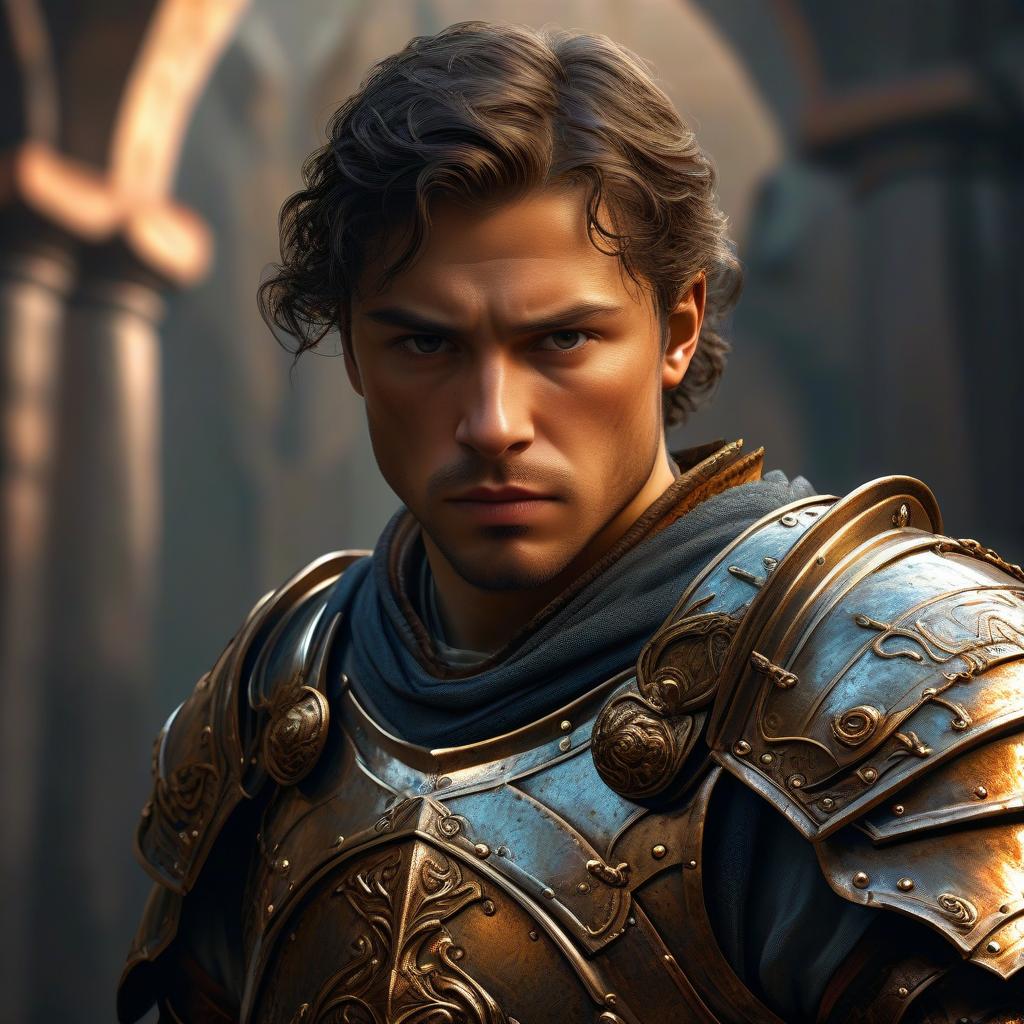 Portrait of a fierce young warrior medieval warrior wearing a heavy bronze scale armor in Roman. Ultra-realistic, hyper-detailed, with smooth textures, subtle reflections, and soft lighting. Sharp focus with intricate detailing. Inspired by Donato Giancola, capturing the essence of strength.