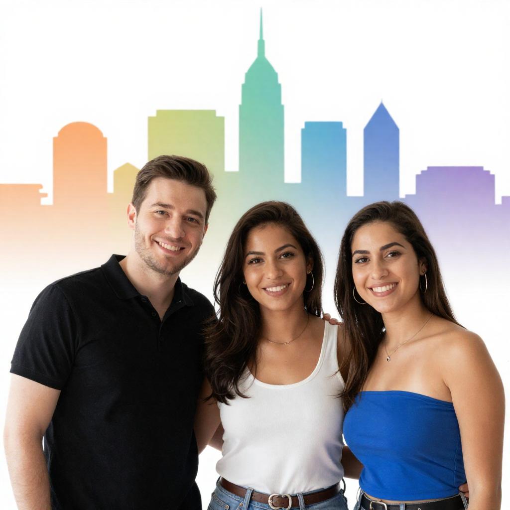 Smiling Trio Against a Floral Background