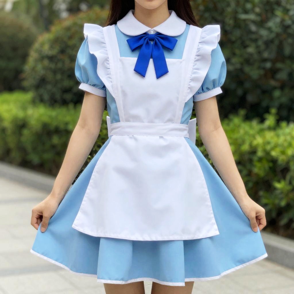 This vibrant digital art features a person in a blue, short, frilled skirt with orange accents and blue fishnet stockings. Their legs are prominent, with high-heeled blue shoes. In the background, there are two other characters in pink and white dresses, standing in front of a bright yellow door. The overall style is colorful and whimsical.