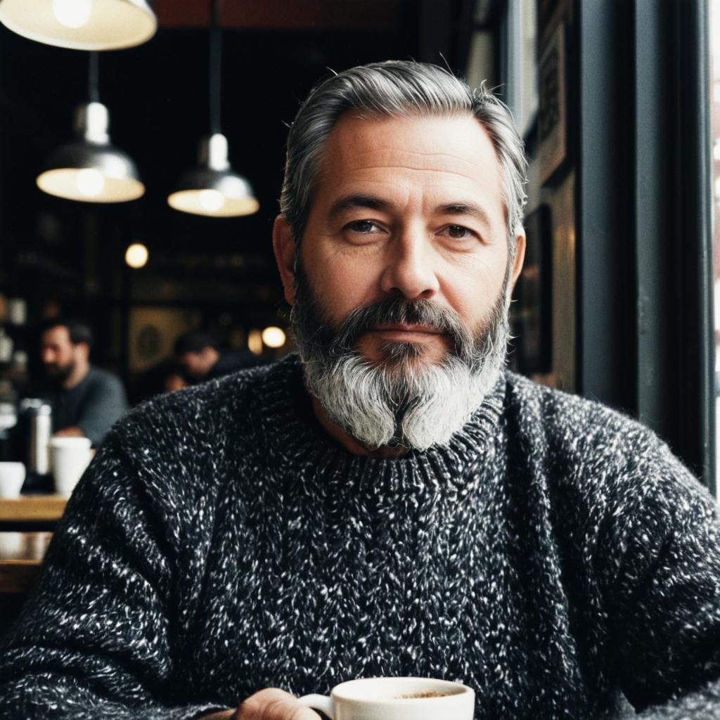 A realistic photograph of a young woman with straight silver hair and tattoos wearing a little red dress, taken from a distance at a modern all-white hair salon reception, natural light, highly detailed, hyper-realism, 35mm film style