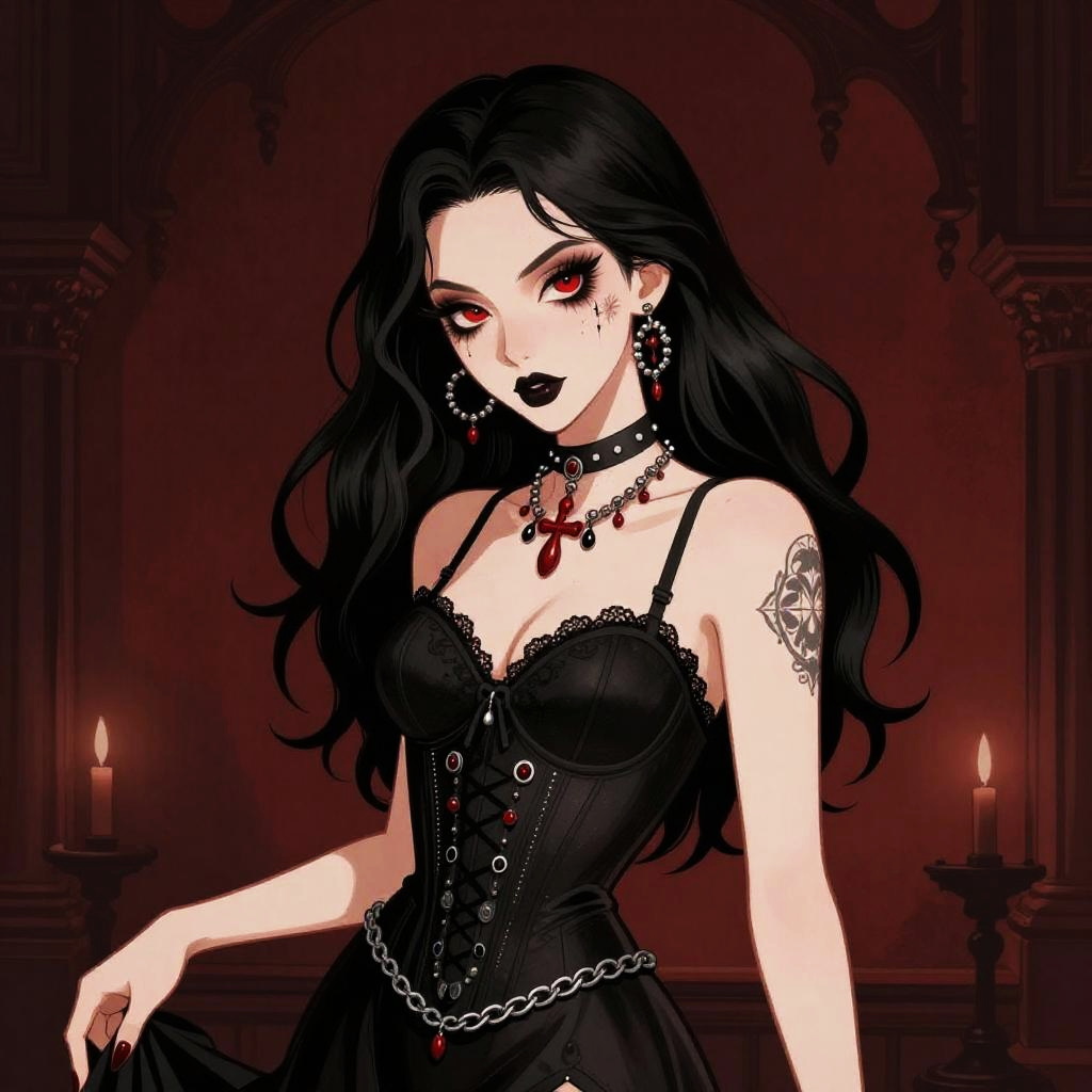 Woman illustration. Cartoon, erotic vibe. Fusion of styles Gothic and Quantumpunk