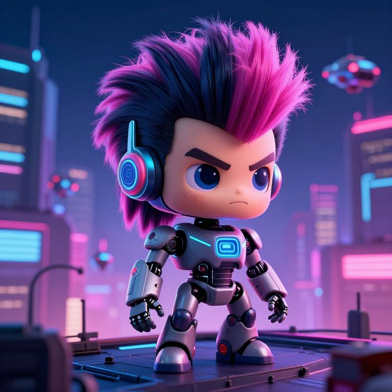 Anime mohawk futuristic racer in sleek metallic suit, speed lines, motion blur background of neon-lit highway, intense focus, vibrant hair colors, high-tech goggles