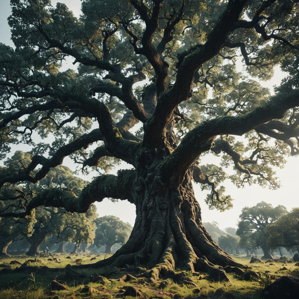 Ancient Oak Tree with Dramatic Lighting