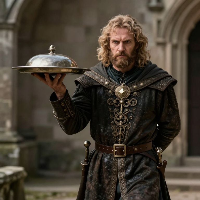 Motion Thirty-year-old red-robed wizard with short brown beard, round face, small slanted eyes and curly brown hair. Epic fantasy.,