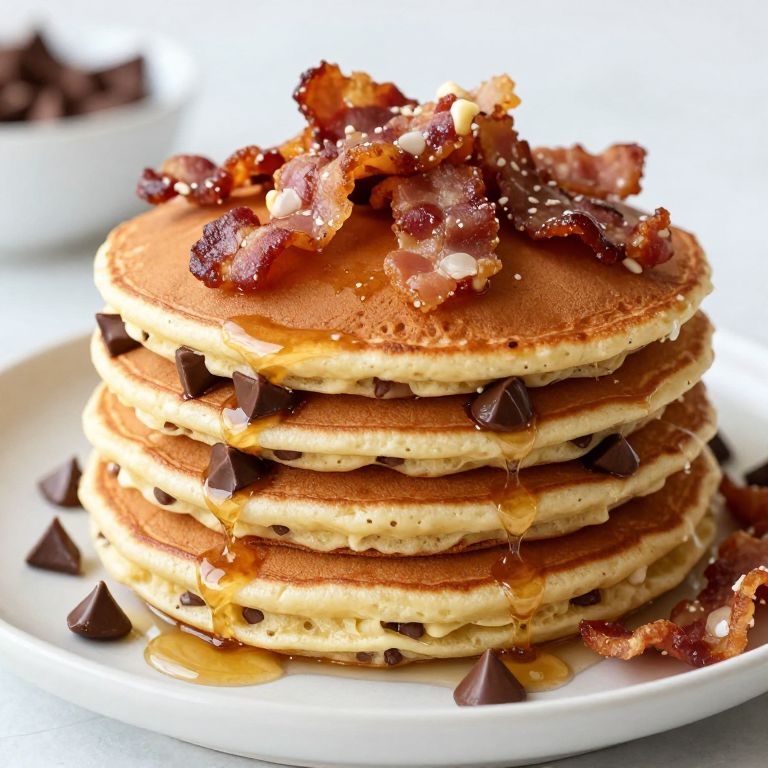 Decadent Chocolate Chip Candied Bacon Pancakes