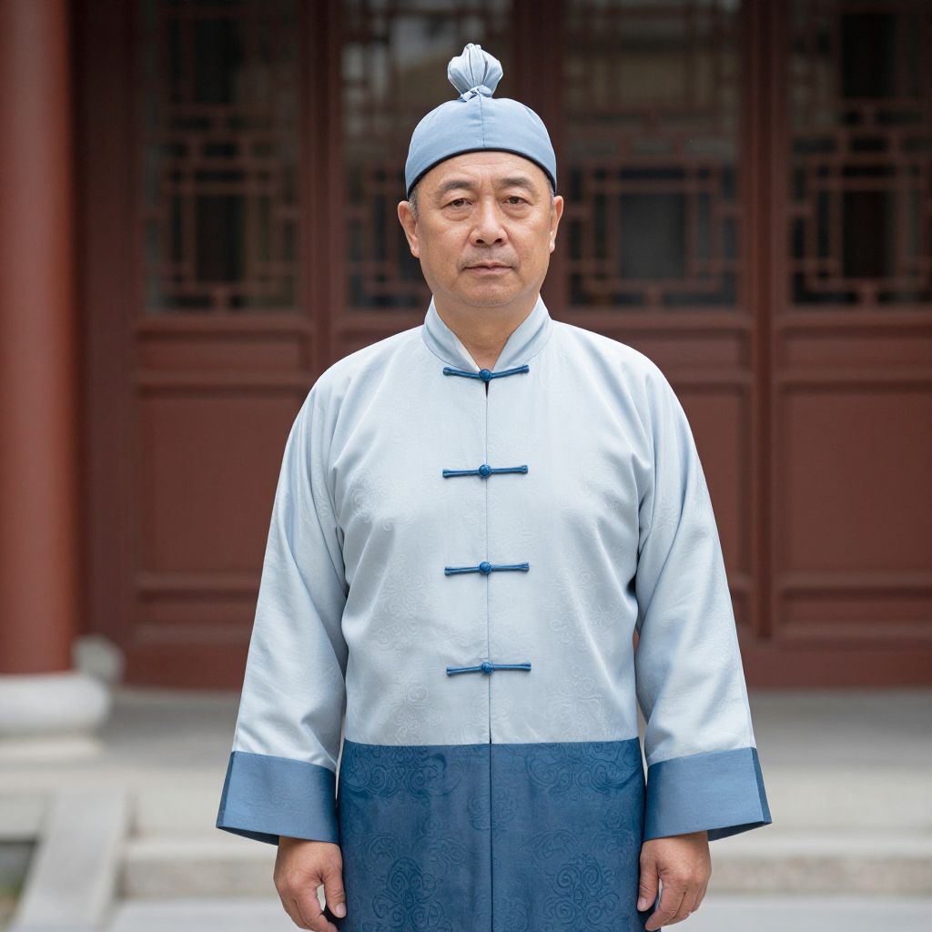Middle Aged Costume, man in traditional chinese dress standing in front of a building
