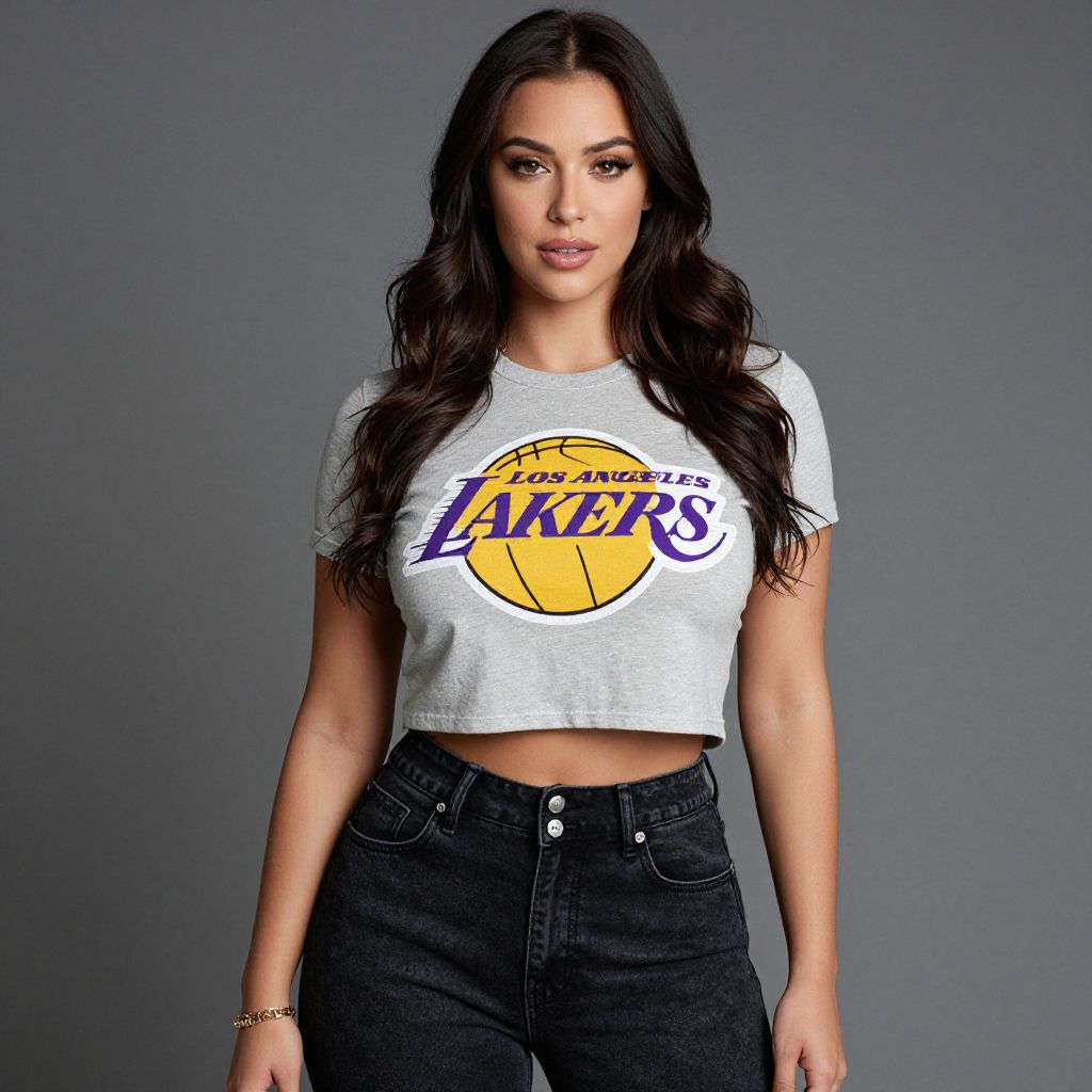 Sporty Woman in Lakers Cropped Tee