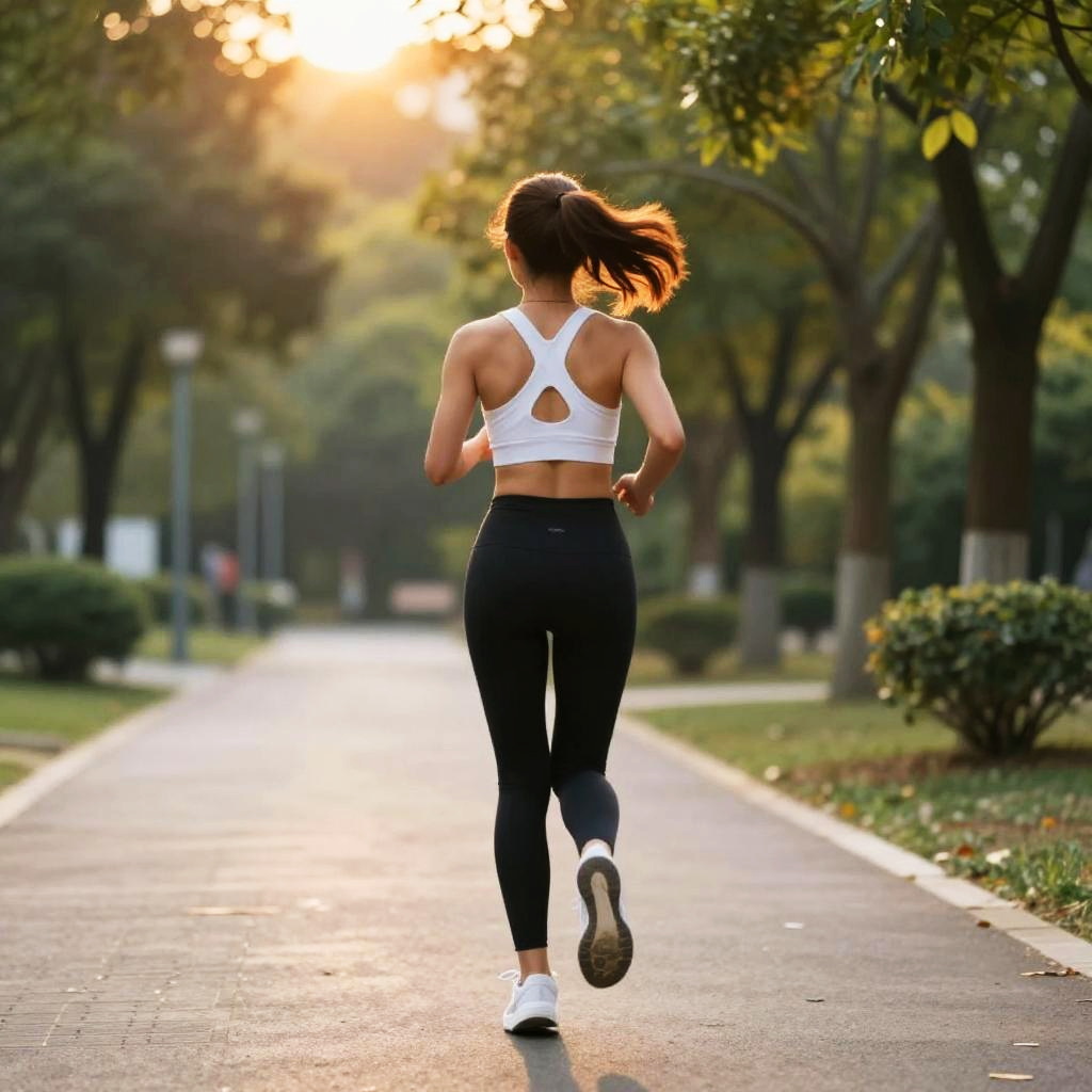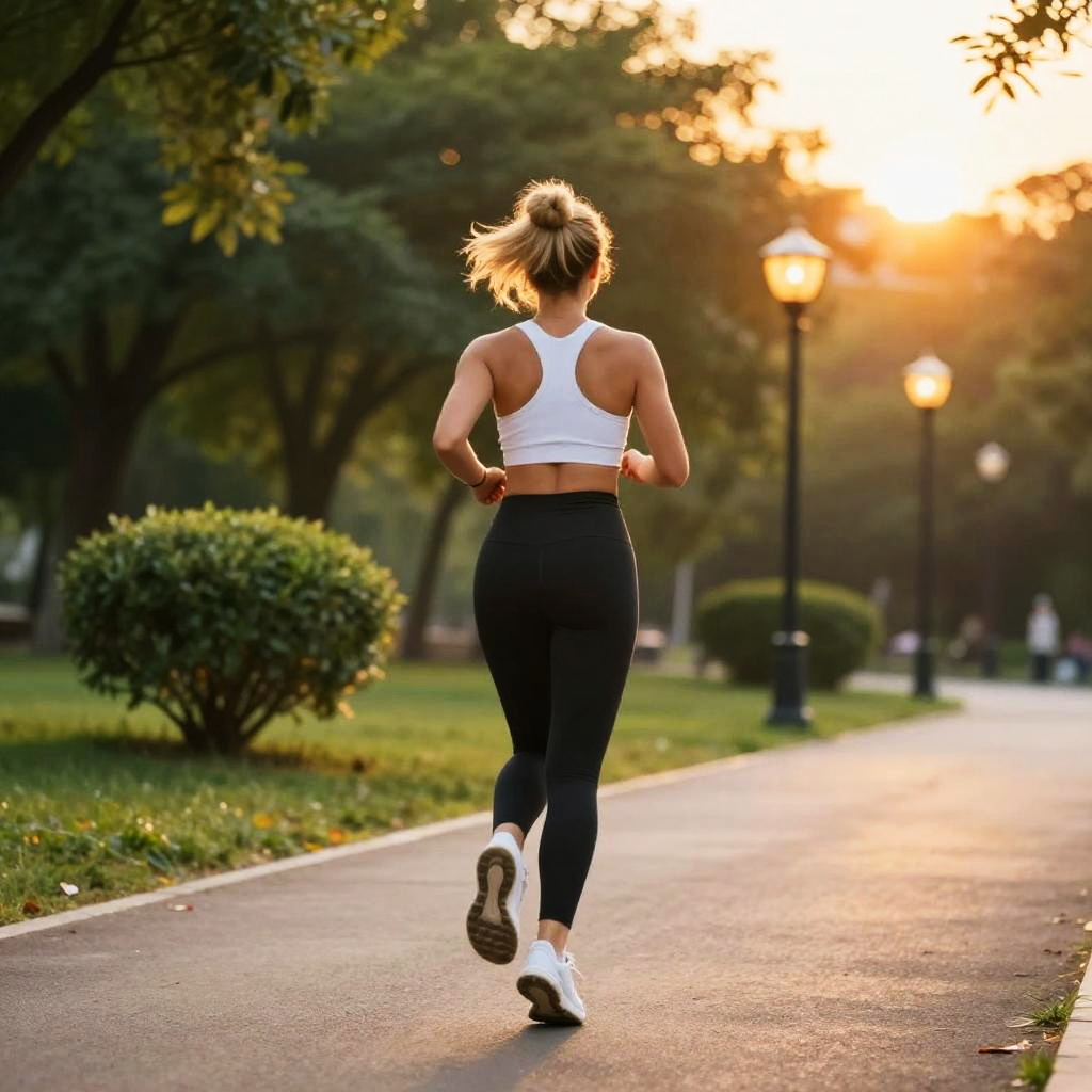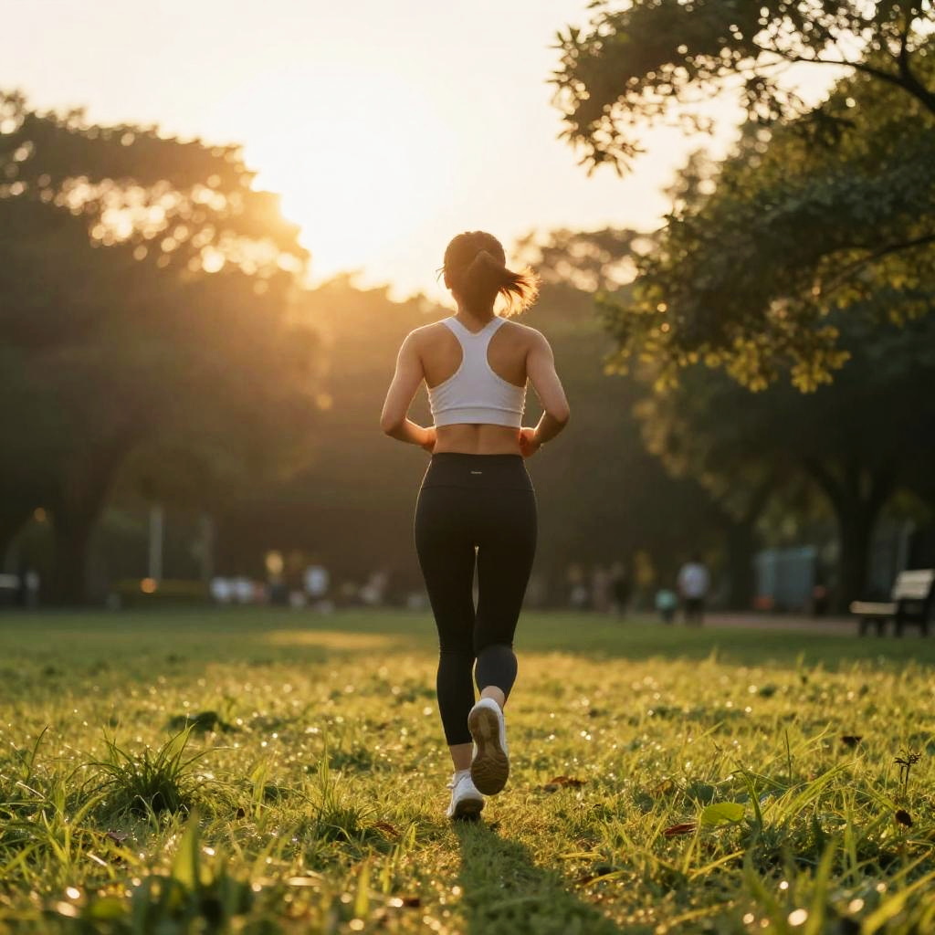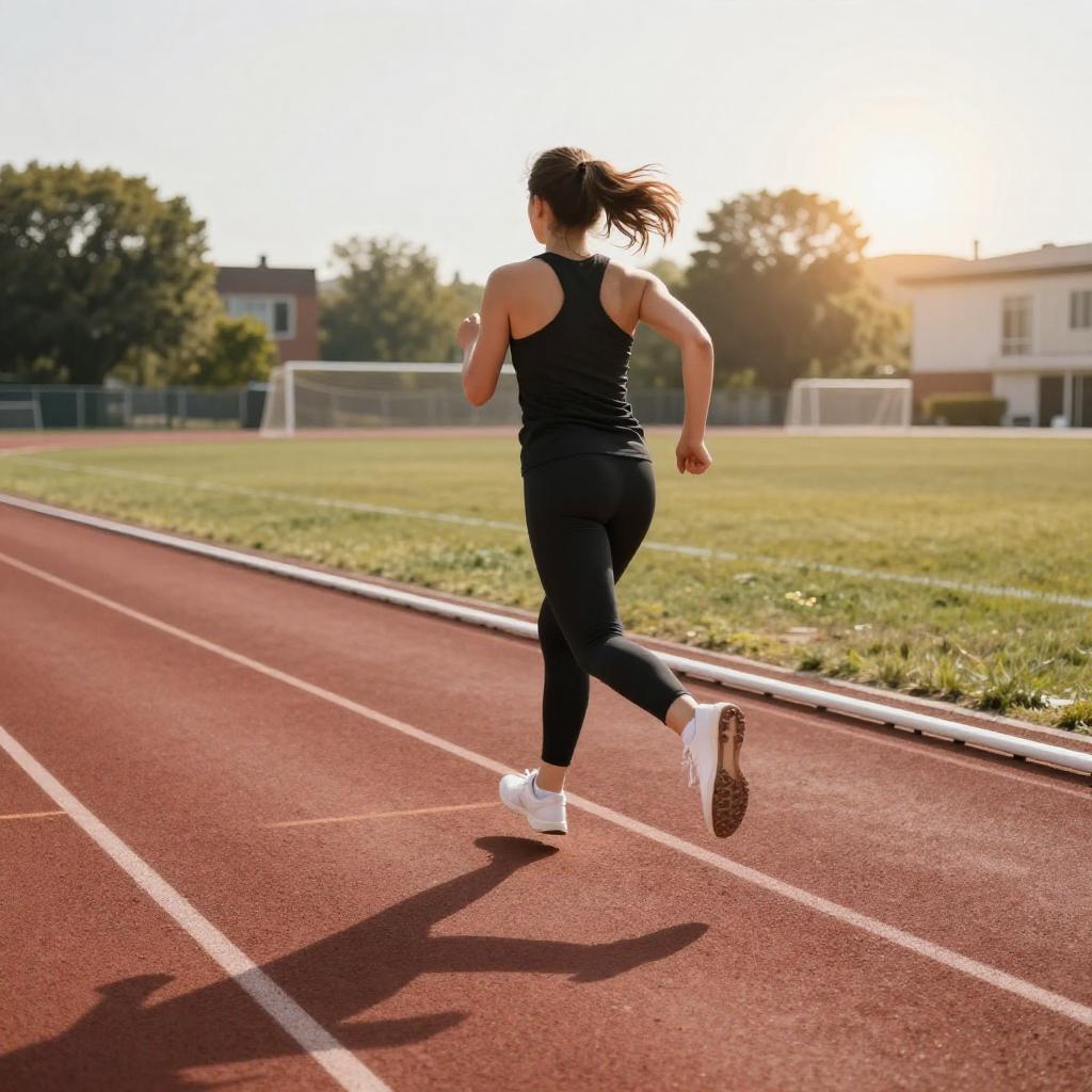 Sunlit Runner on Green Turf Field