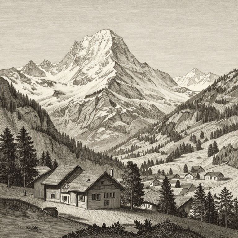 Berne and Bernese Alps Engraving