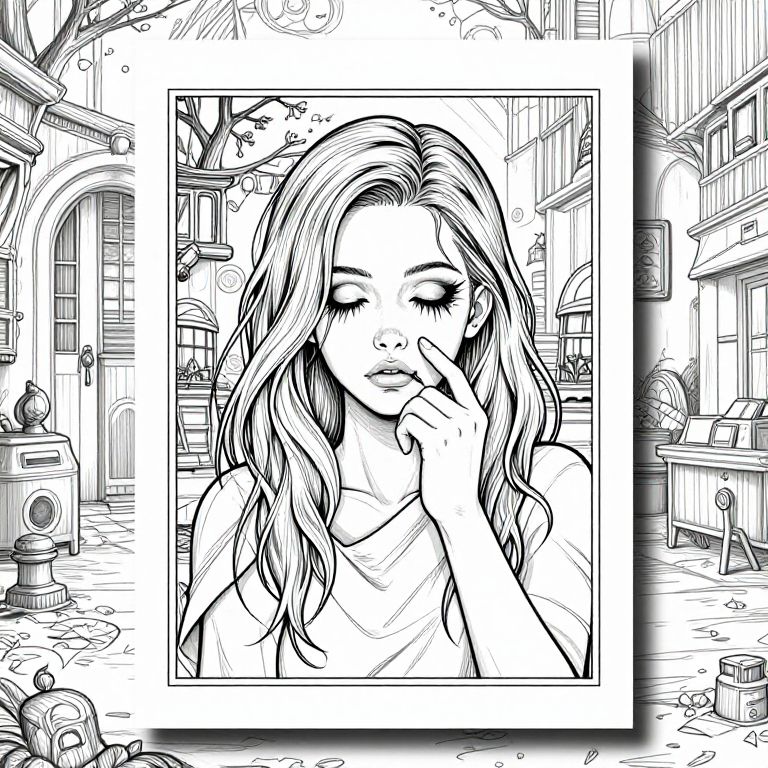 Digital coloring book page: a serial killers beautiful nightmare, COLORING BOOk PAGE, black and white outline, REALISTIC illustrated background,