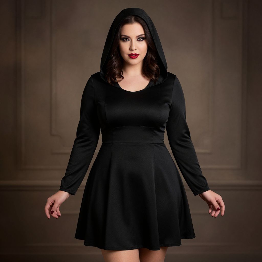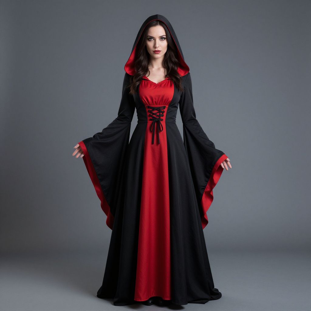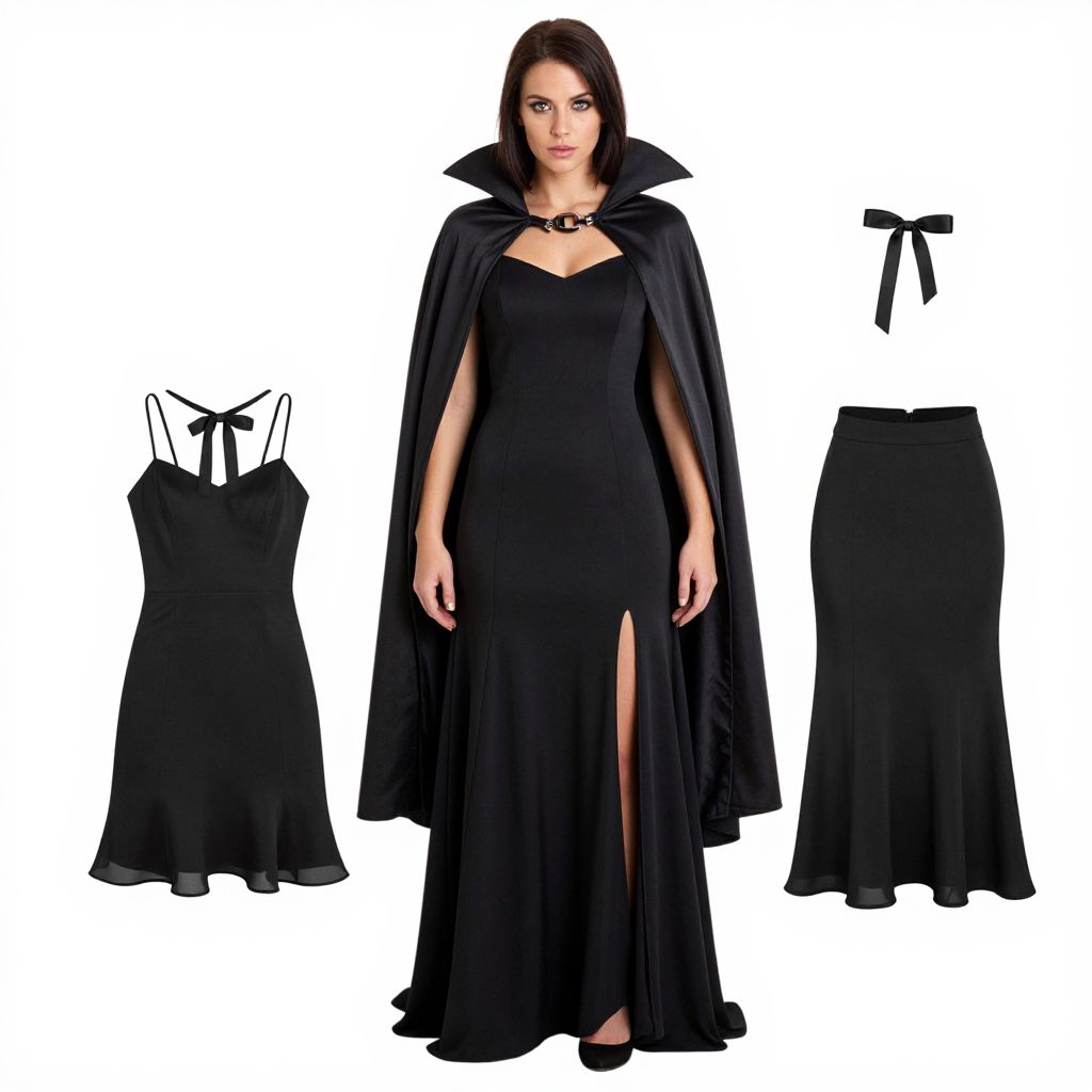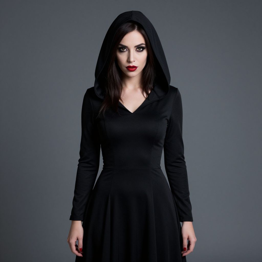 "Vampire Dress, a close up of a woman in a black dress and a black cape"