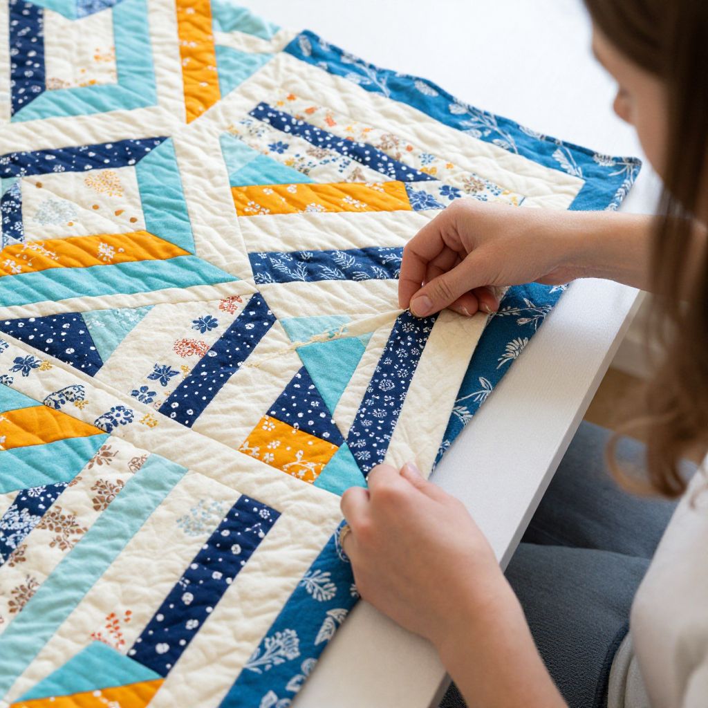 Woman Crafting Vibrant Geometric Quilt