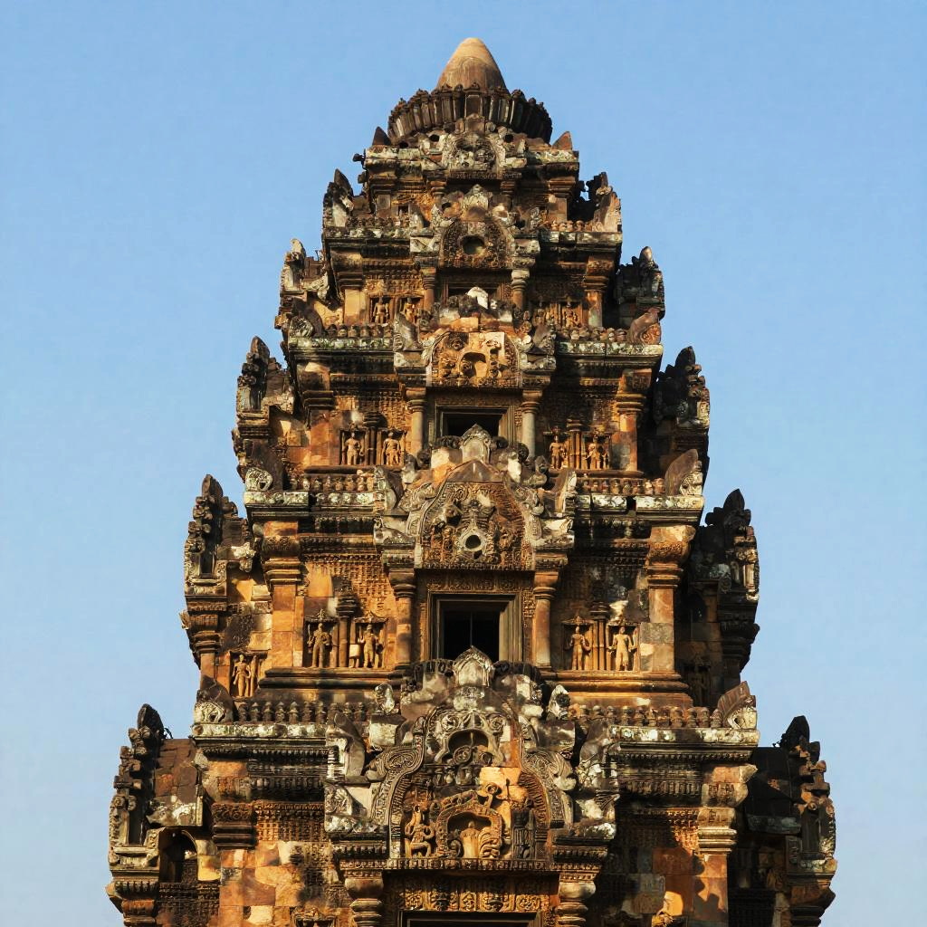 Ancient Stone Temple Tower with Intricate Carvings