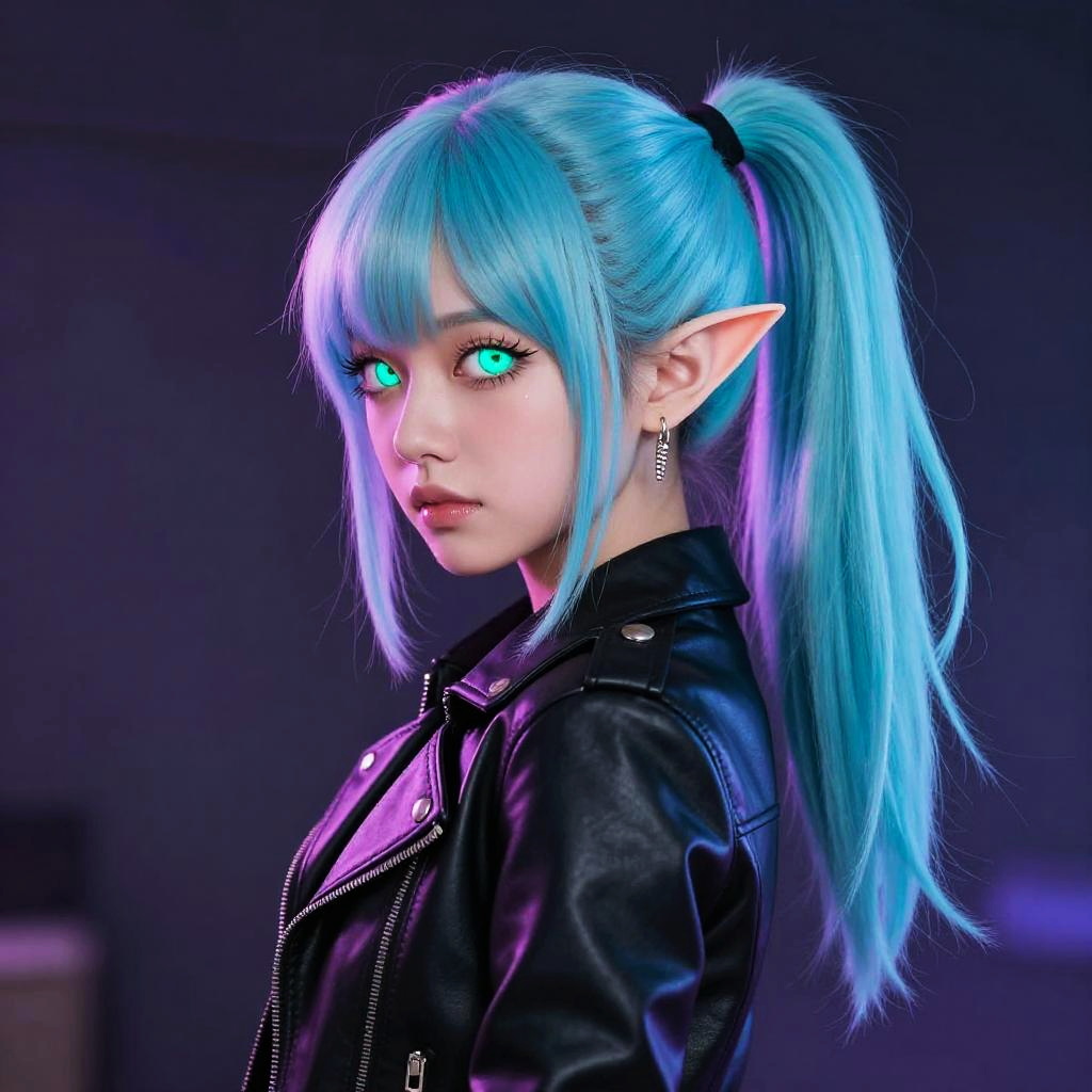 Neon Elf Girl in Leather Jacket