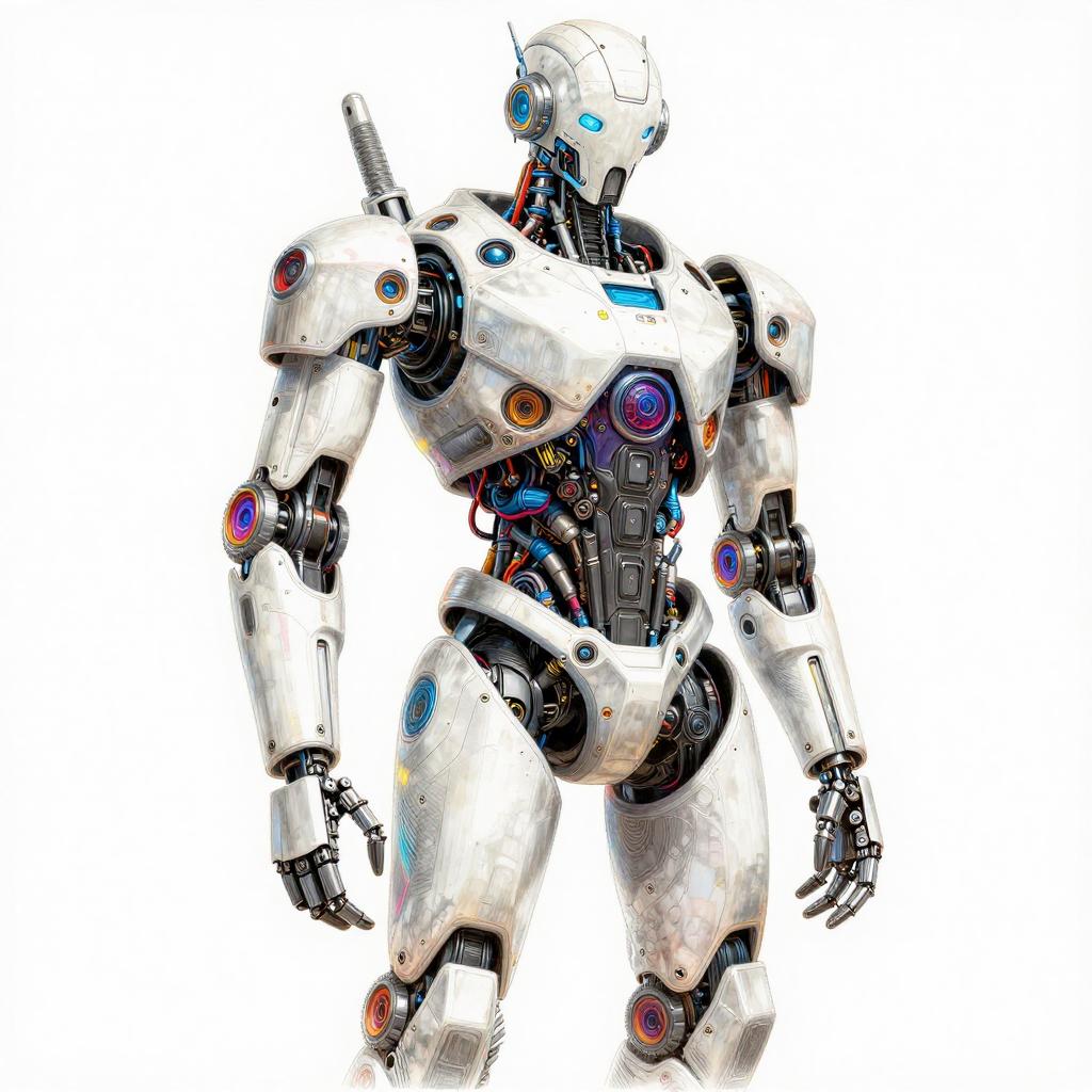 Vivid Cyberpunk Robot Watercolor Art