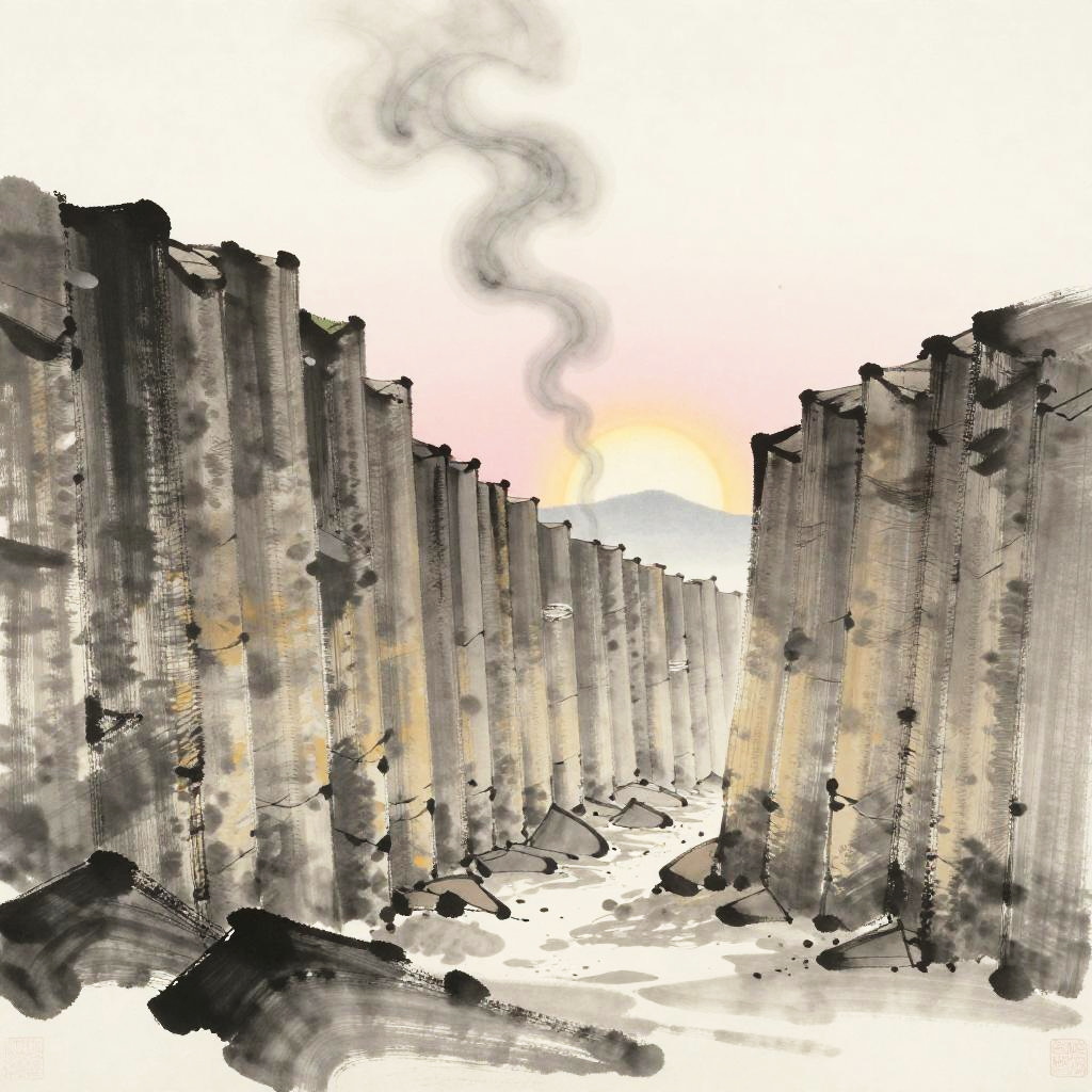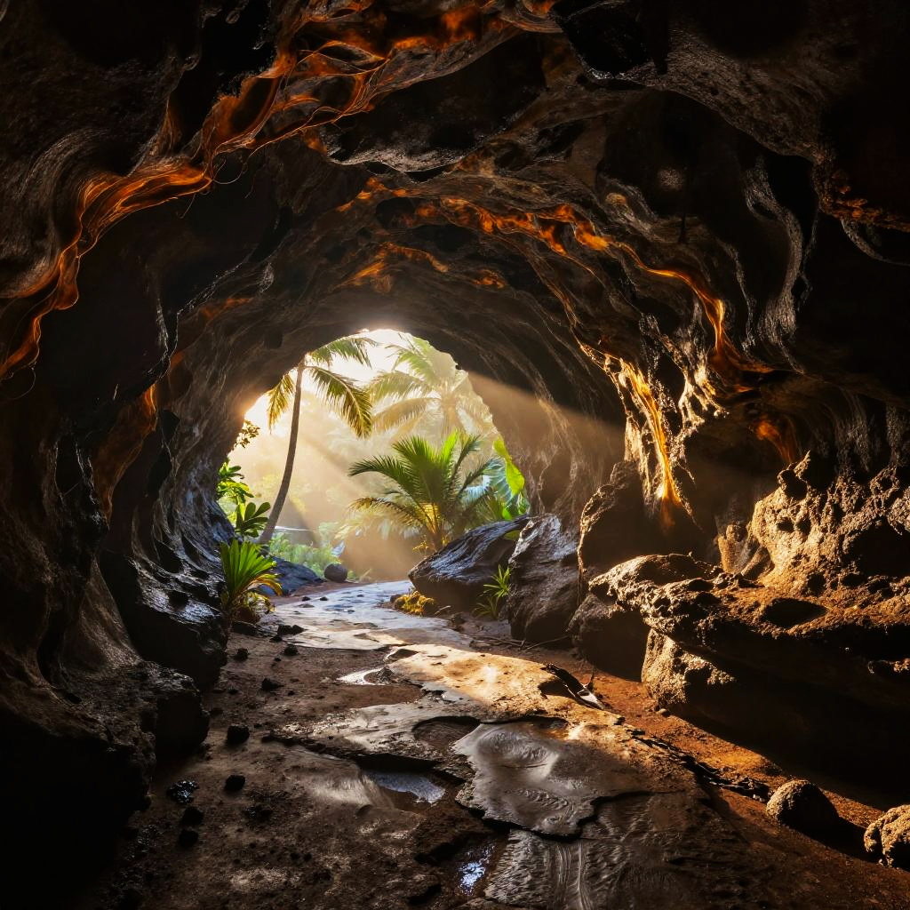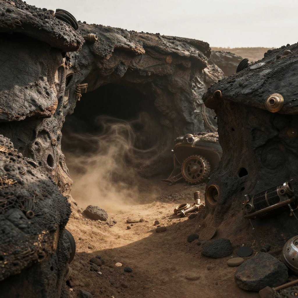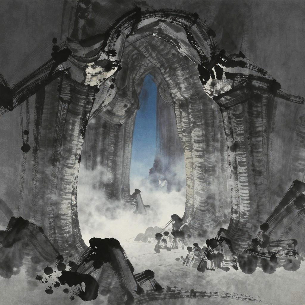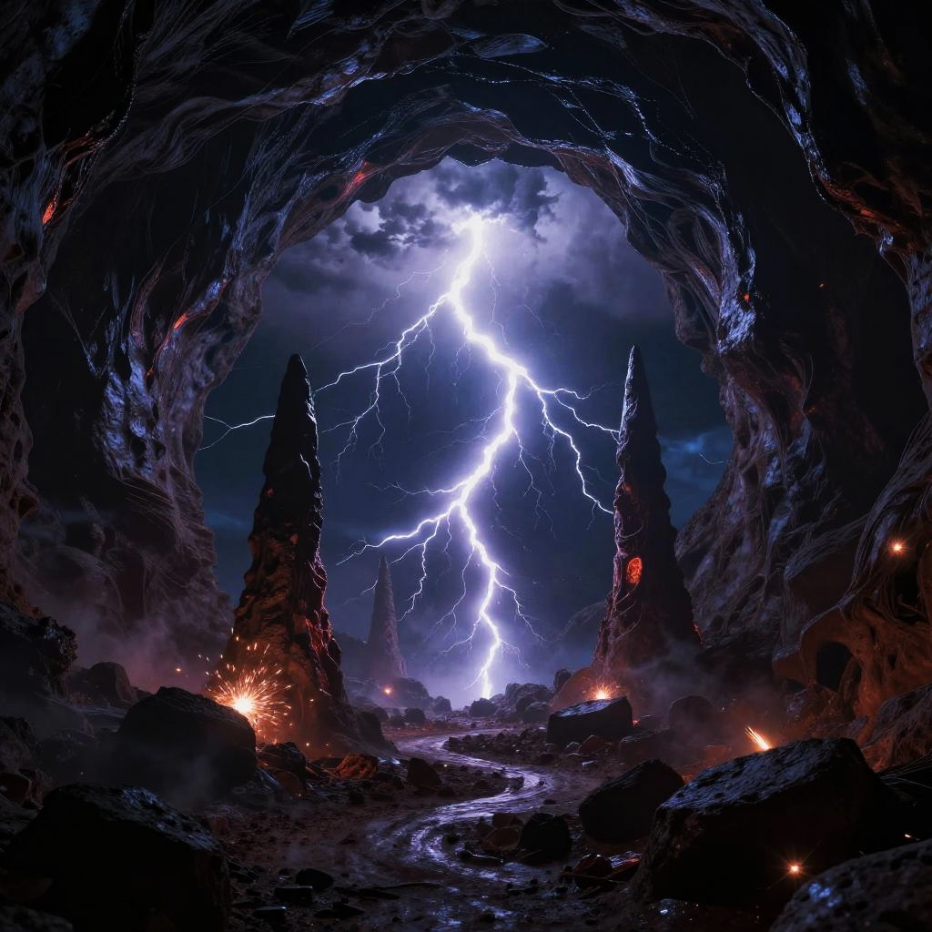 Monochrome Lava Tube Landscape Sketch
