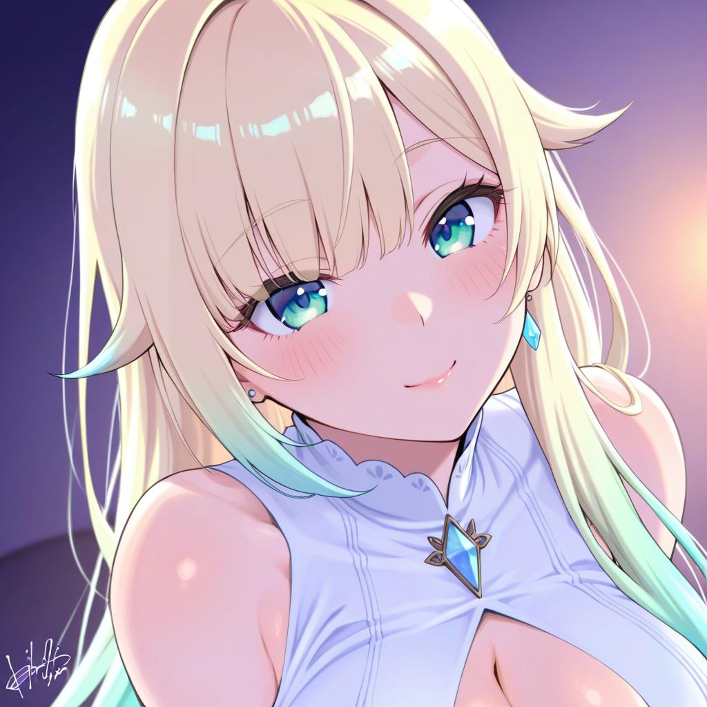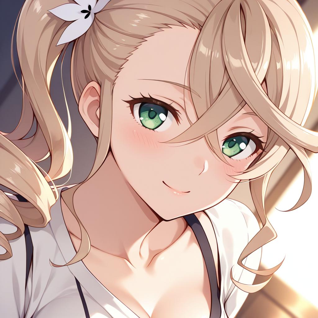 Aeru (simoun), simoun, 1girl, green eyes, blonde hair, double bun, by artist moisture (chichi), illustrious