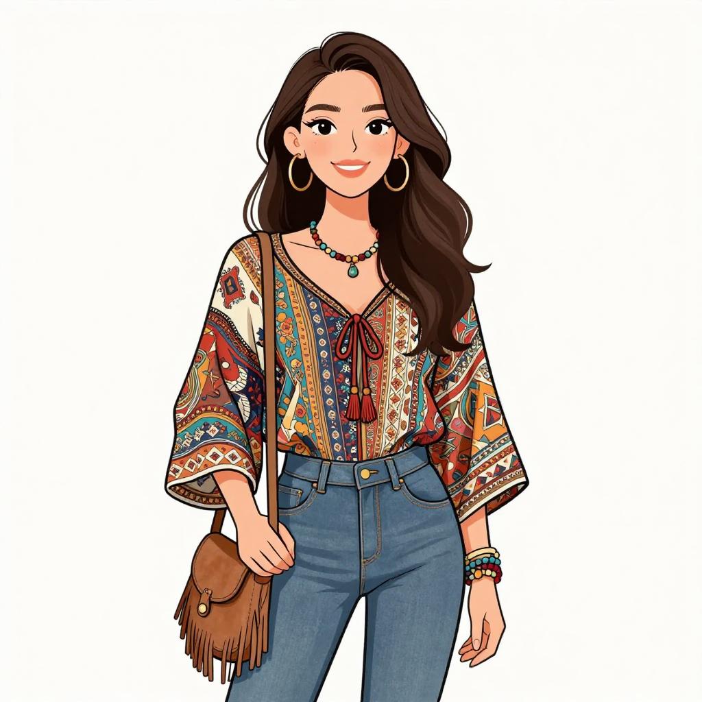 Stylish Bohemian Woman in Summer Outfit
