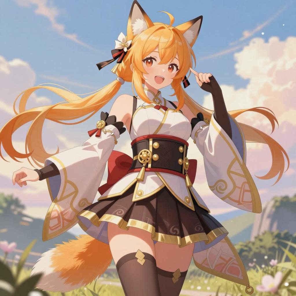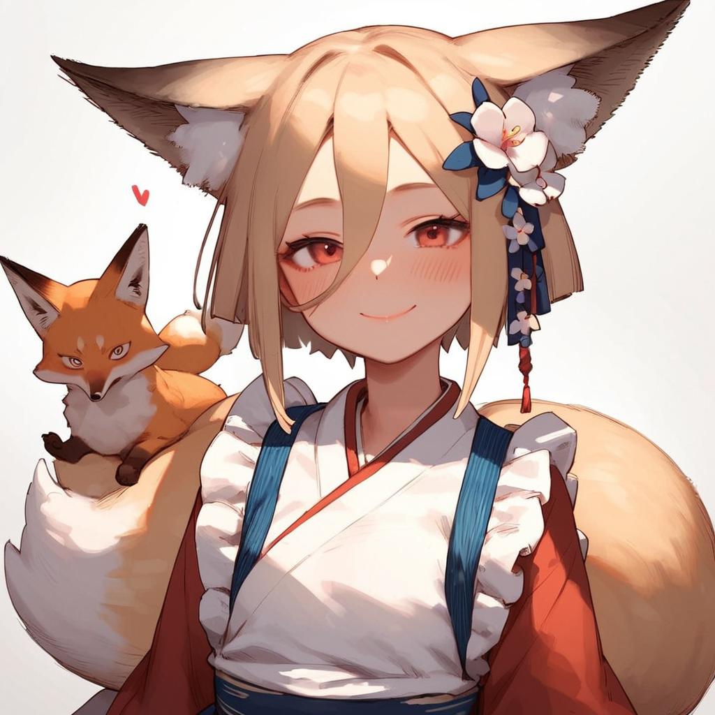 Adorable Fox Girl in Japanese Attire