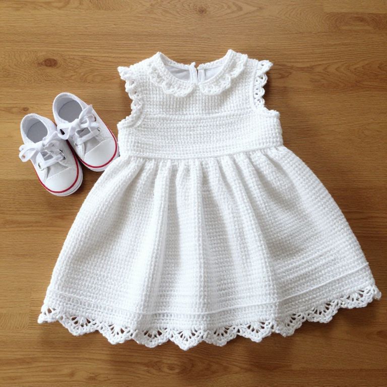 Photograph of a delicate, white lace headband adorned with five round, lustrous pearls evenly spaced across the center. The lace features intricate, scalloped edges and is placed atop an ornate, cream-colored doily with a detailed, circular pattern. In the background, a partially visible, rolled-up, white, patterned fabric lies at the top right corner. The overall composition exudes a vintage, elegant aesthetic with soft, neutral tones and a focus on intricate textures and details.