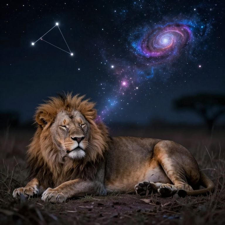 Lions wear miniature galaxies as collars, their purrs emitting visible stardust when they slumber beneath alien constellations.