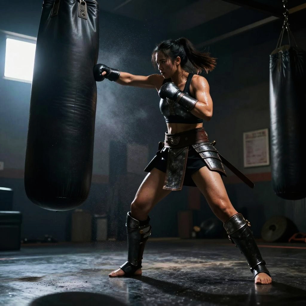 Futuristic MMA Fighter Training Scene