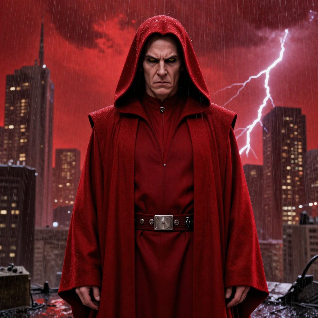 (masterpiece))A etheral Dark Maul, celestial, HDR, hyper realistic, black hood