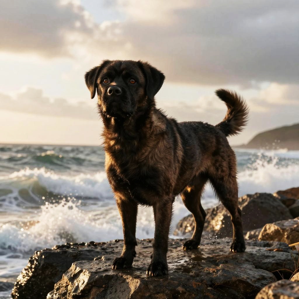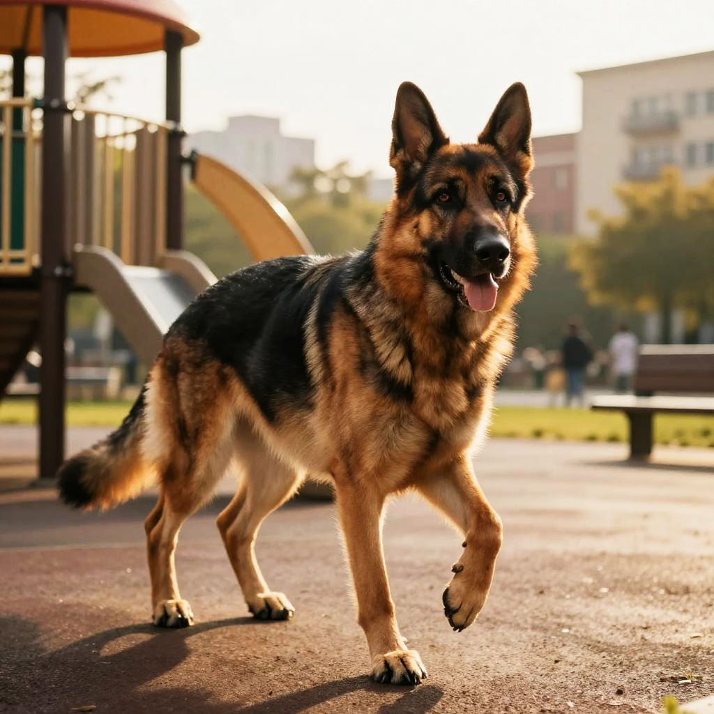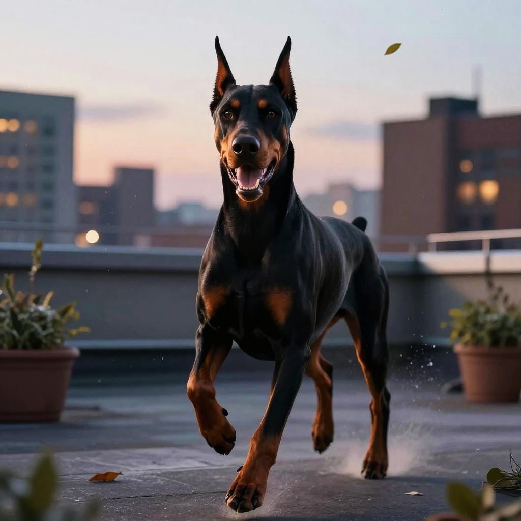 Belgian Malinois, captured mid-action in urban rooftop terrace at golden hour with city skyline, photorealistic cinematic look with rich warm rim lighting and deep natural color tones, dynamic pose, sleek coat, ultra-detailed fur texture, expressive eyes, atmospheric haze, realistic shadows, subtle motion blur on paws, balanced composition, tactile realism, high resolution, crisp yet natural details, immersive environment, dramatic yet believable lighting, award-winning wildlife photography vibe