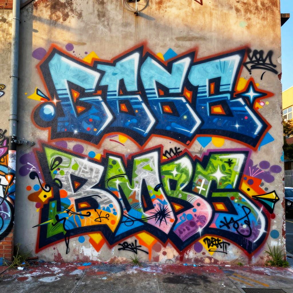Wildstyle graffiti generator designing a vibrant, detailed urban art scene with overlapping stylized letters, wild curves, sharp points, graffiti tags, and vibrant color splashes, rendered in high contrast on a grungy city alley wall during golden hour.
