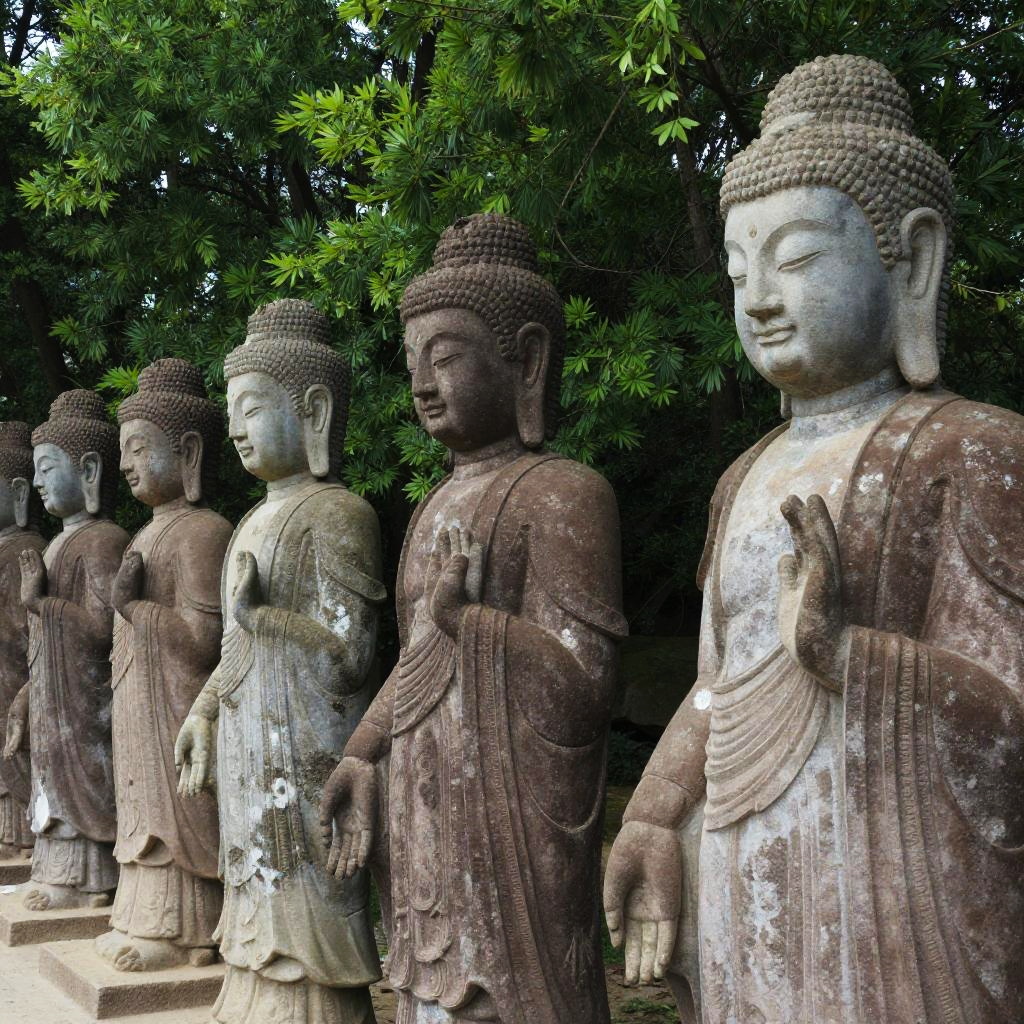 Serene Stone Buddha Statues in Forest
