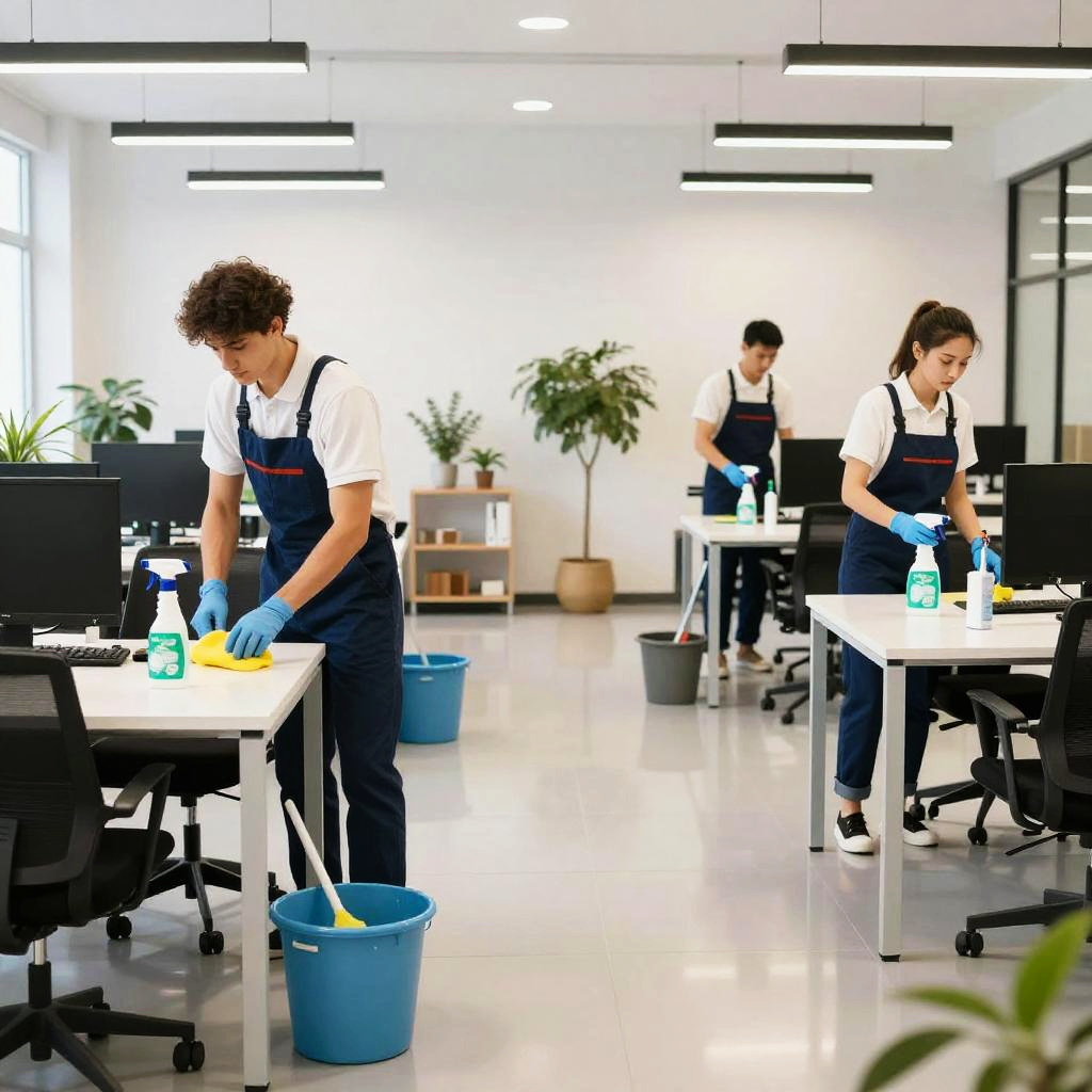 Eco-Friendly Cleaning Team in Office