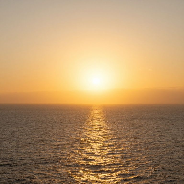 An ethereal symphony of light and color bathes the ocean in golden hues, evoking a profound sense of serenity and the timeless dance between earth and sky.
