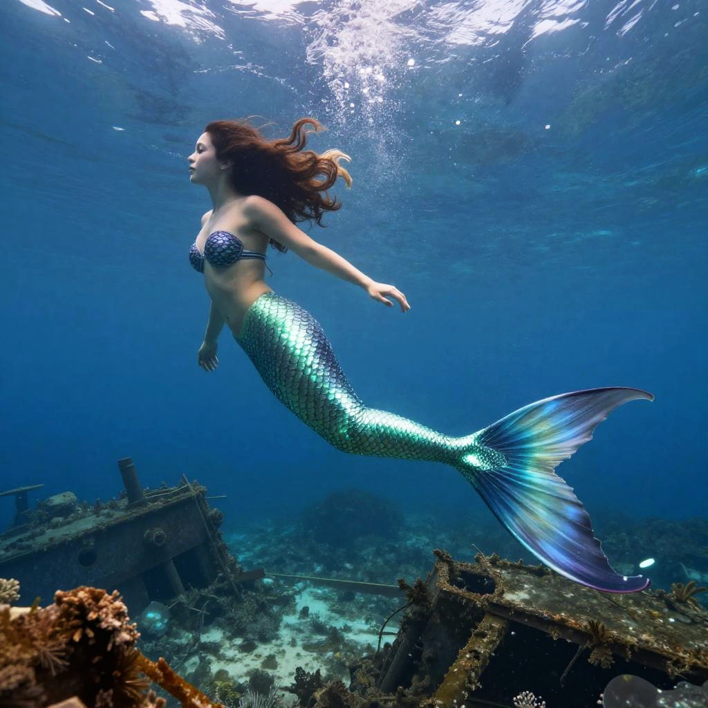 Realistic Mermaid Swimming Underwater