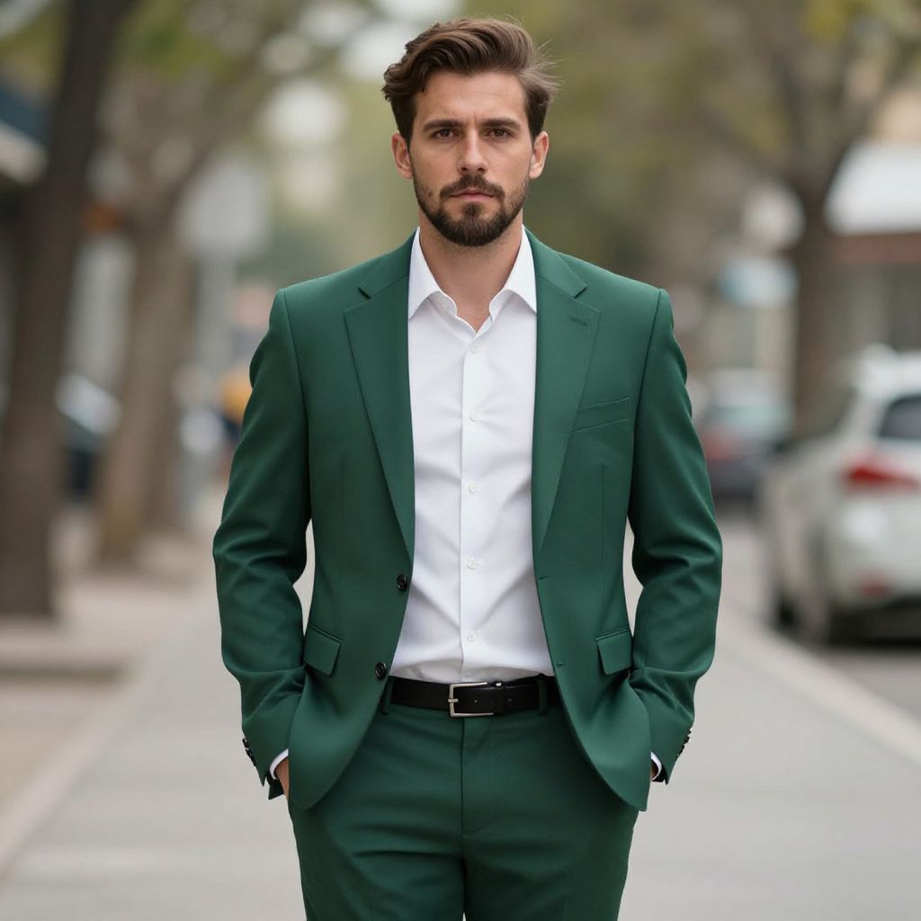 Man in Green Formal Suit Outdoors