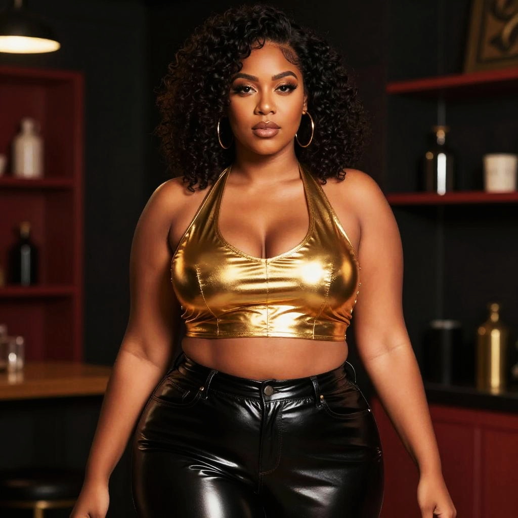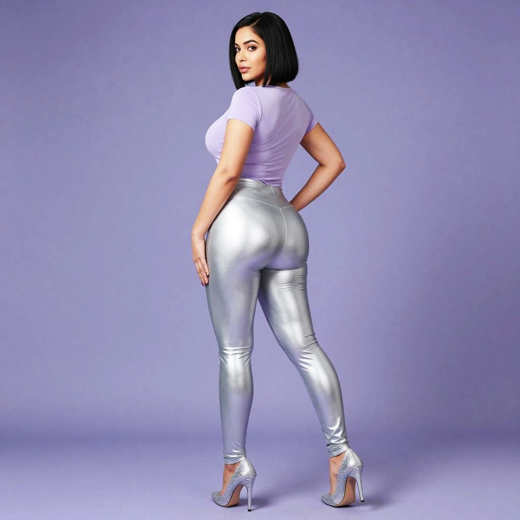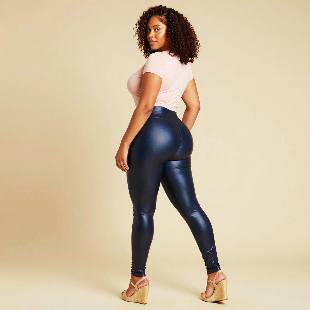 Stylish Woman in Glossy Leggings