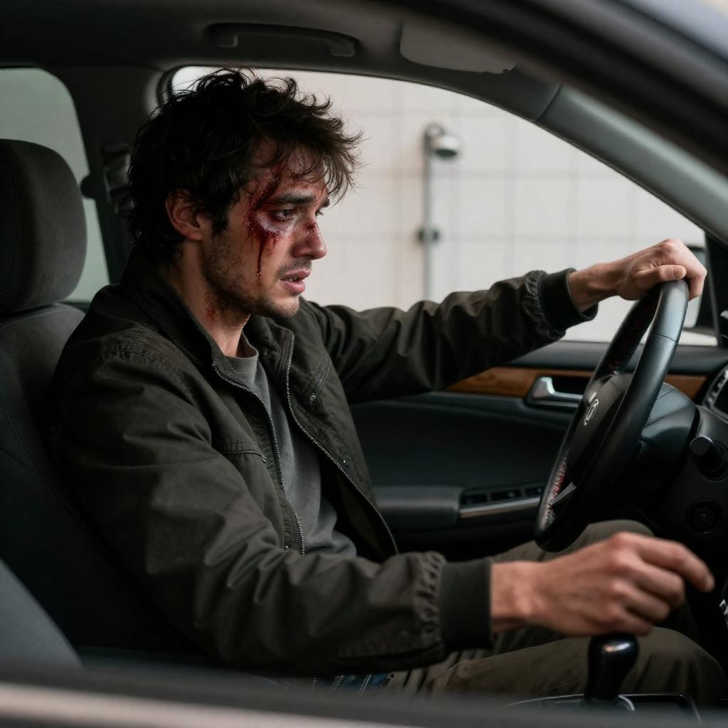 Blood-Stained Man in Dim Auditorium