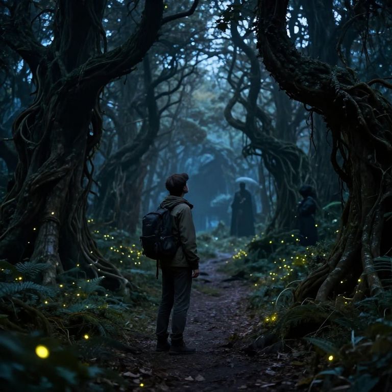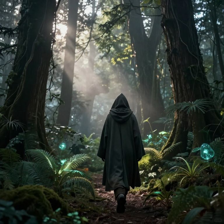 Mysterious Traveler in Enchanted Forest