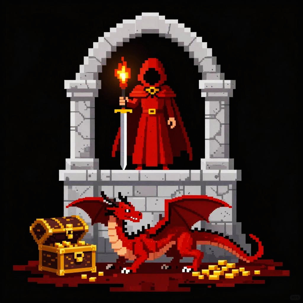 Pixel chess match between two pixelated opponents in a pixel art fantasy world, chess pieces designed as pixelated knights and wizards, colorful and detailed background